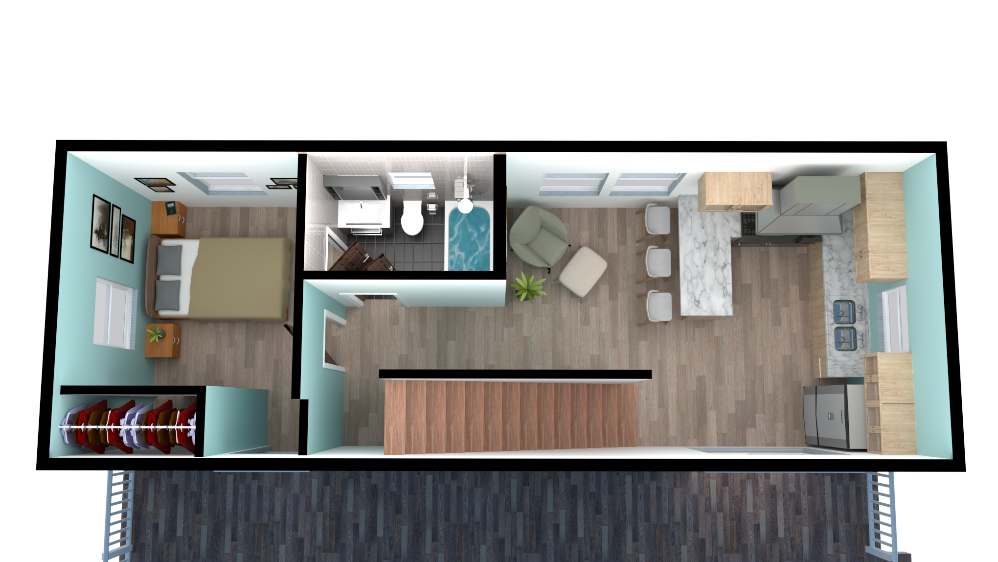 Main Living Areas: Living Room: 42’3” x 17’11” – expansive central space for gathering and entertaining