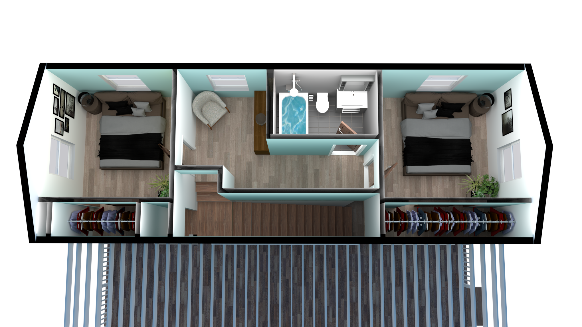 Multiple interior doors for room separation